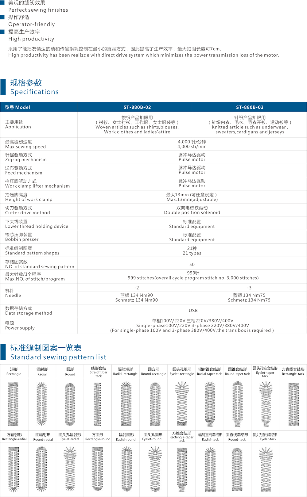 采用了能把友情達的動和傳輸損耗控制在最小的直驅方式,因此提高了生產效率,最大扣眼長度可7cm.